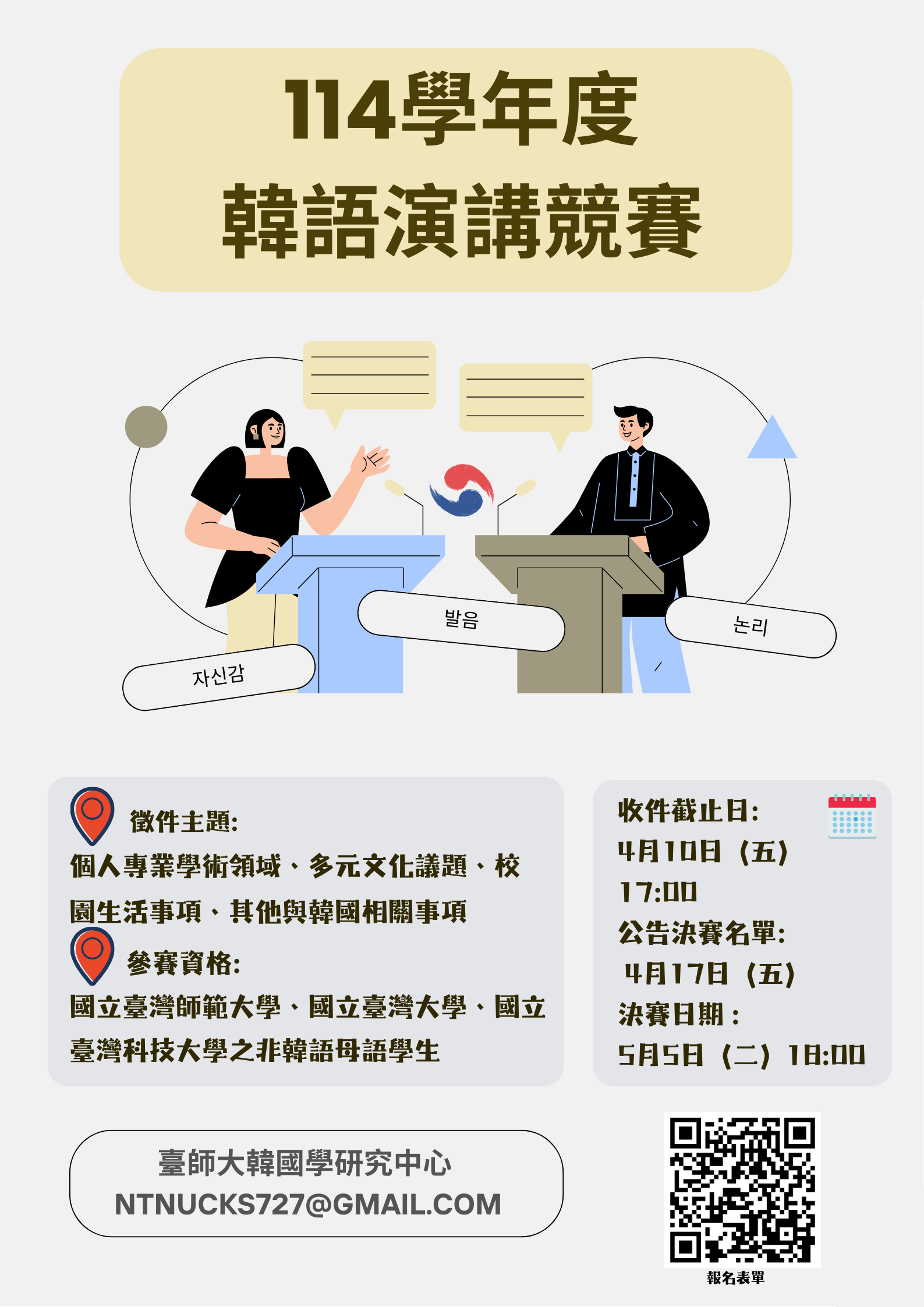 📢 114學年度韓語演講競賽 熱烈徵件中! 🎤